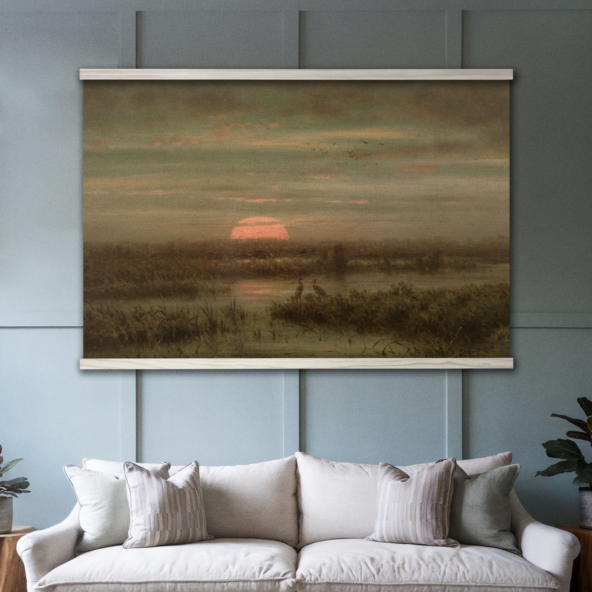 Herons at Sunrise Marsh Landscape Painting
