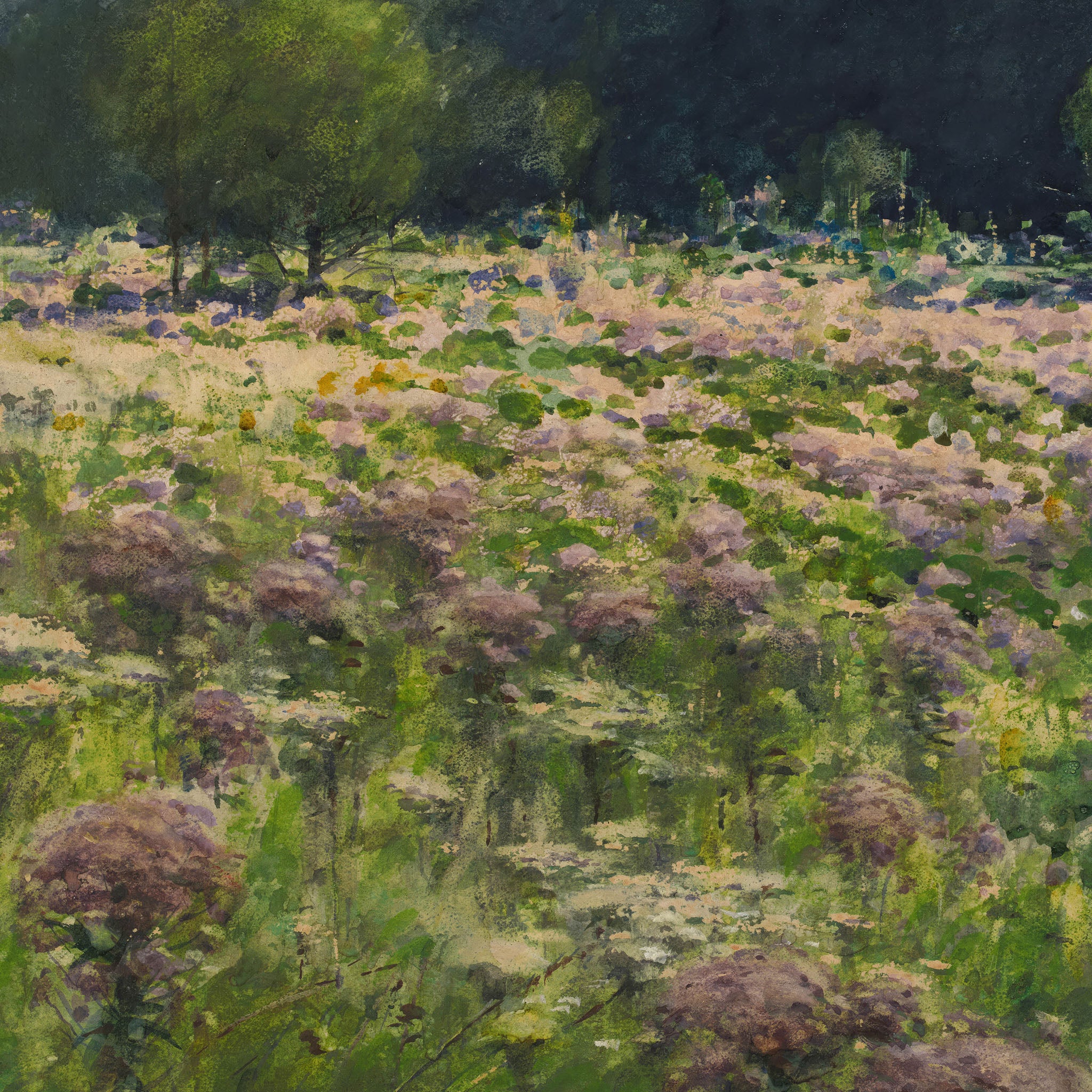 Vintage Purple Wildflower Meadow Landscape